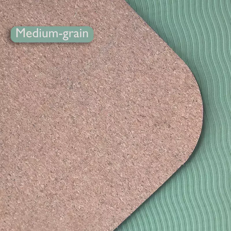Our Affordable Cork TPE Cork Yoga Mat combines two environmentally friendly materials: a top layer made of imported cork granules and a bottom layer of recyclable TPE. Glue-free lamination ensures odor-free operation. Boga Sports offers a variety of yoga mat sizes and thicknesses. As a professional yoga mat manufacturer, we provide comprehensive product support.